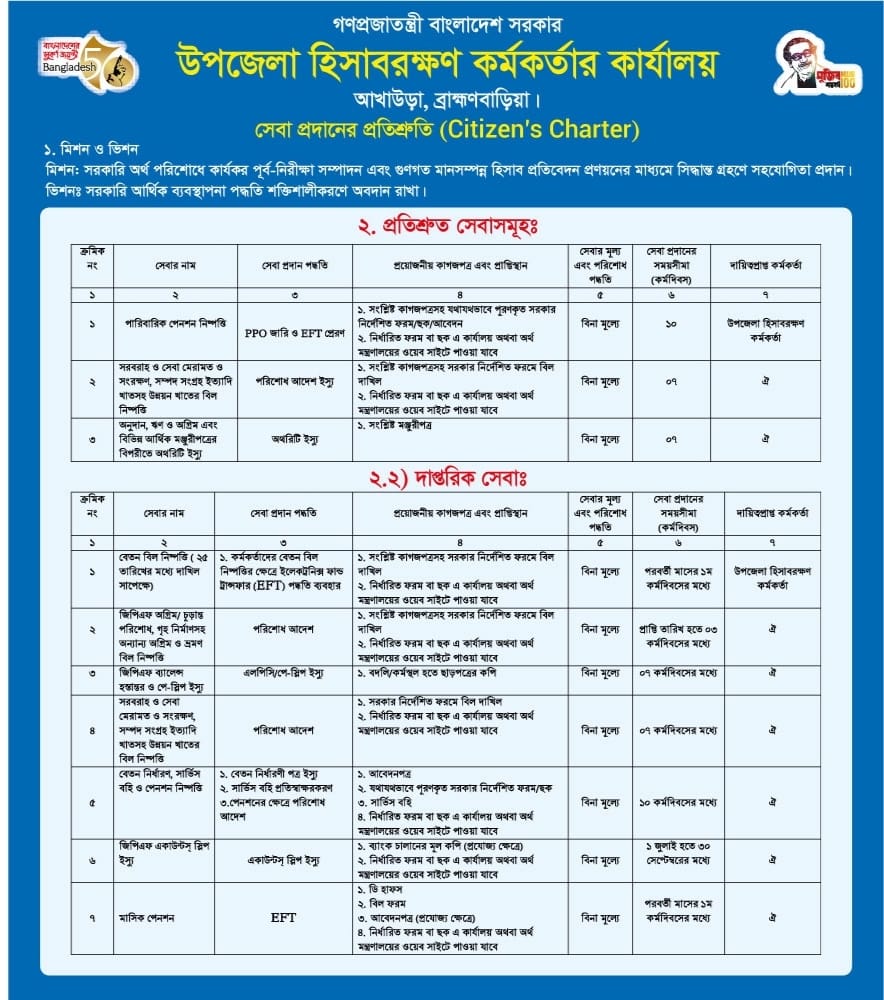 | ৮ | সিএও অফিসের অথরিটির ভিত্তিতে অনুদান ও প্রকল্পের ছাড়কৃত অর্থের বিল পাশ | ইউএও, অডিটর, জুনিয়র অডিটর, এমএলএসএস | টোকেন কাউন্টার - টোকেন নং - অডিটর- ইউএও-জুনিয়র অডিটর-ইউএও-এমএলএসএস -সোনালী ব্যাংক | প্রাপ্তির পর ৭ কর্ম দিবসের মধ্যে | ঐ |